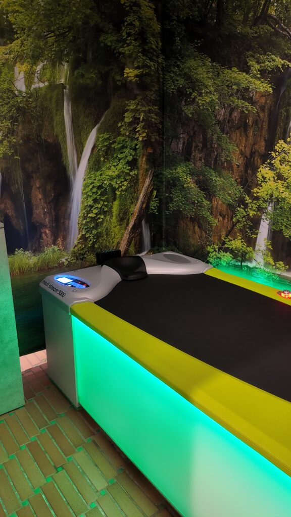 Après avoir réservé, vous disposez de 120 secondes pour vous préparer – après ce temps, le massage sélectionné commence en appuyant sur le bouton start. L’opération est intuitive et explicite – vous pouvez commencer votre massage d’une simple pression sur un bouton dès que vous êtes allongé sur le fauteuil. Vous pouvez ajuster le volume et l’intensité de la musique vous-même à tout moment.
